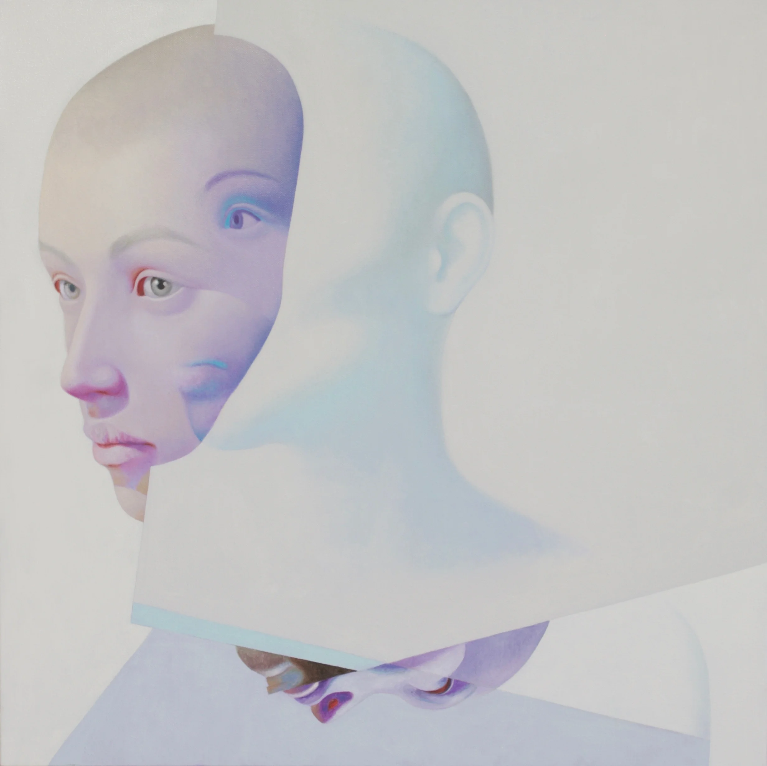Joseph Bounds is a North Carolina based artist. His work is about finding balance and clarity within oneself. The work in his current series is composed of two subjects: the human figure and the mirror surface. The space of each painting is occupied by more than one view of the figure and multiple mirrors intersecting, framing, or otherwise interacting with it to create visual echoes throughout the image.