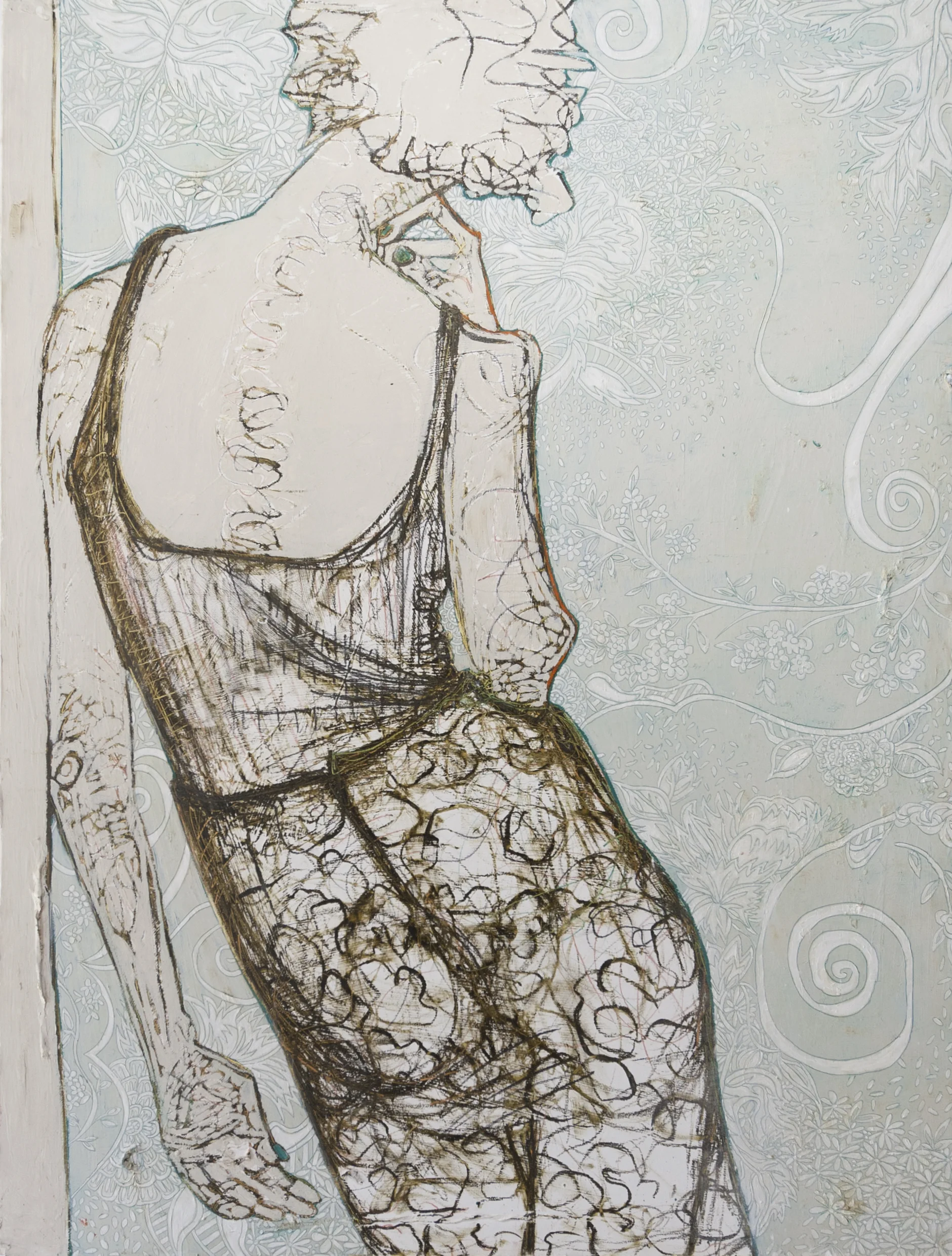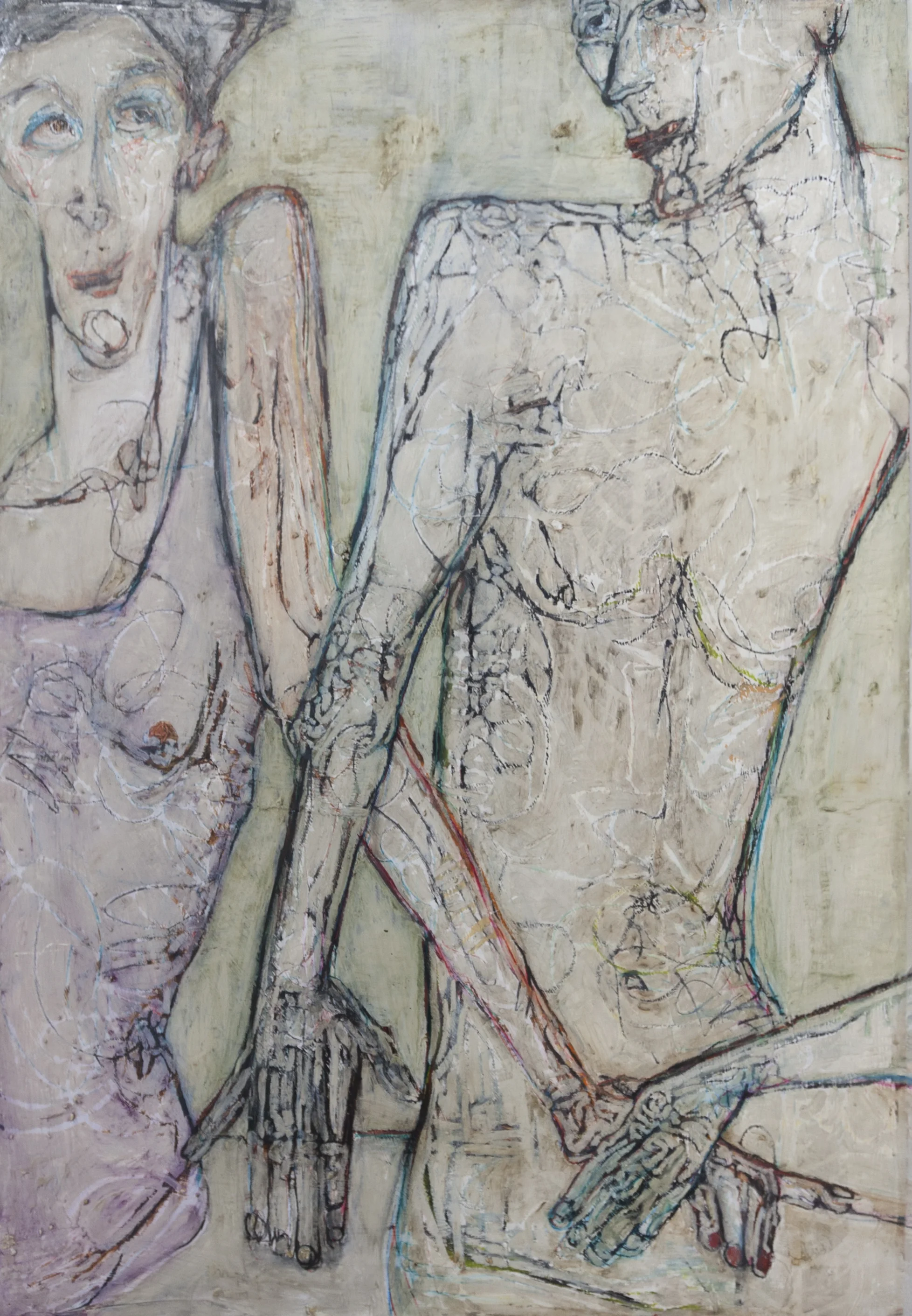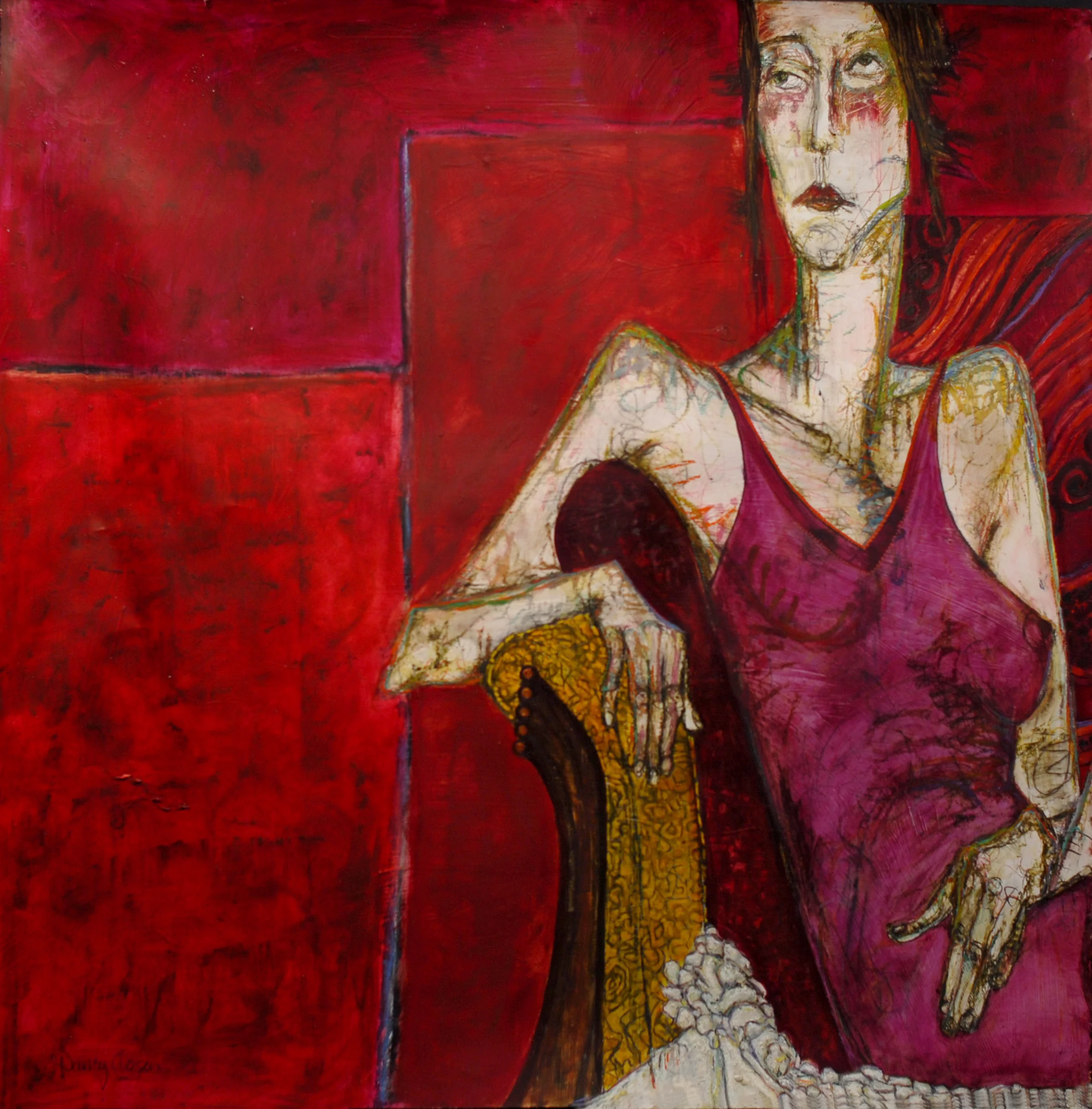 Working on a variety of surfaces, she creates her images with the application of oil bars, china markers, graphite and oil paint, using live models. With her complex backgrounds she accentuates the quiet inner beauty of her figure and draws life itself into her subject. Nancy Rosen steps into the spotlight with her solo exhibit, Frankly Mine.