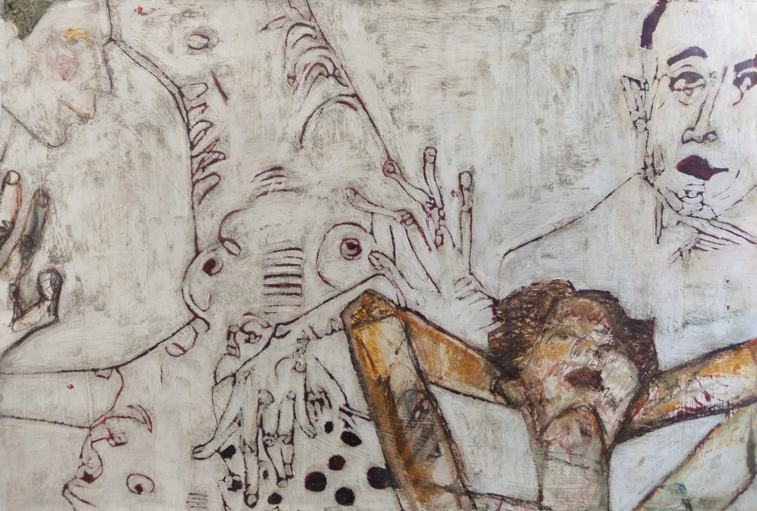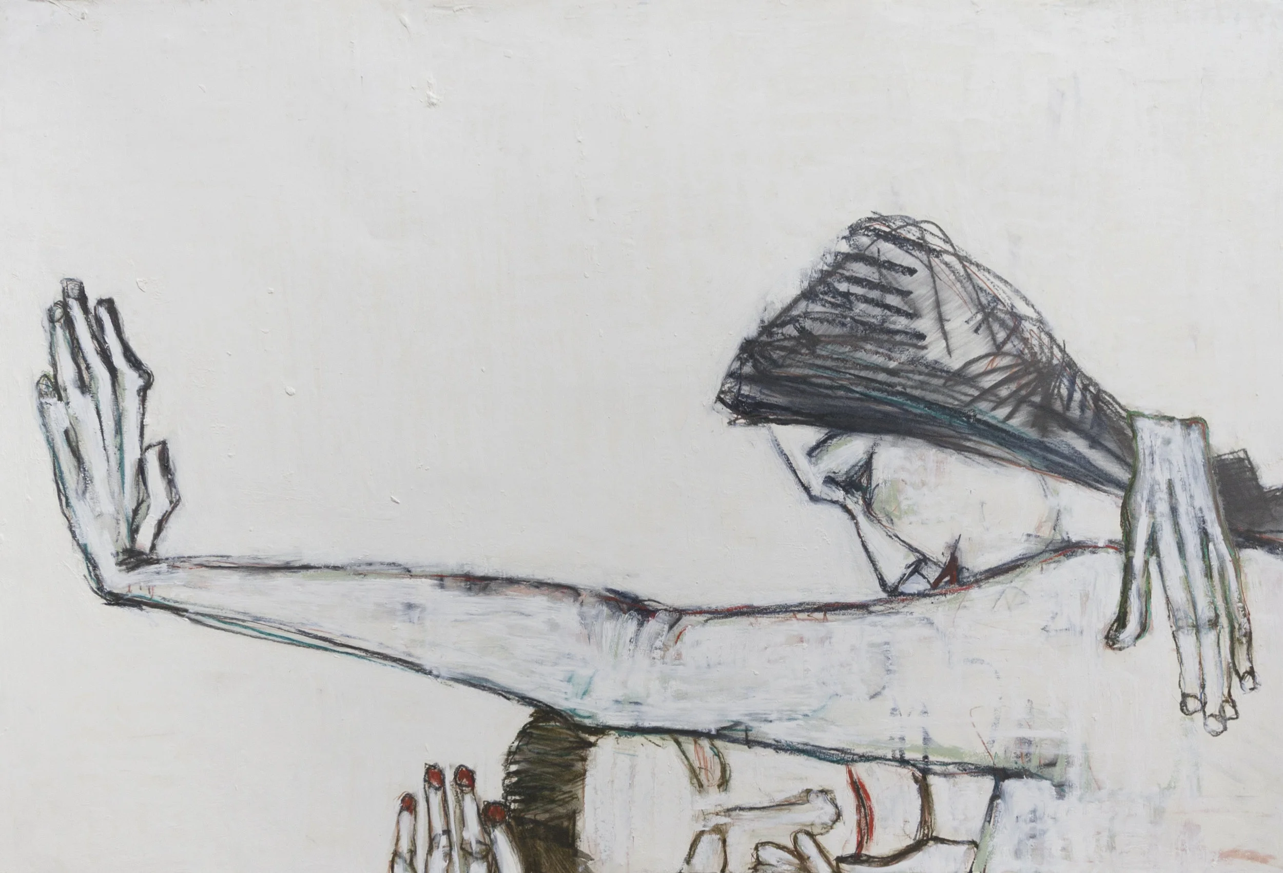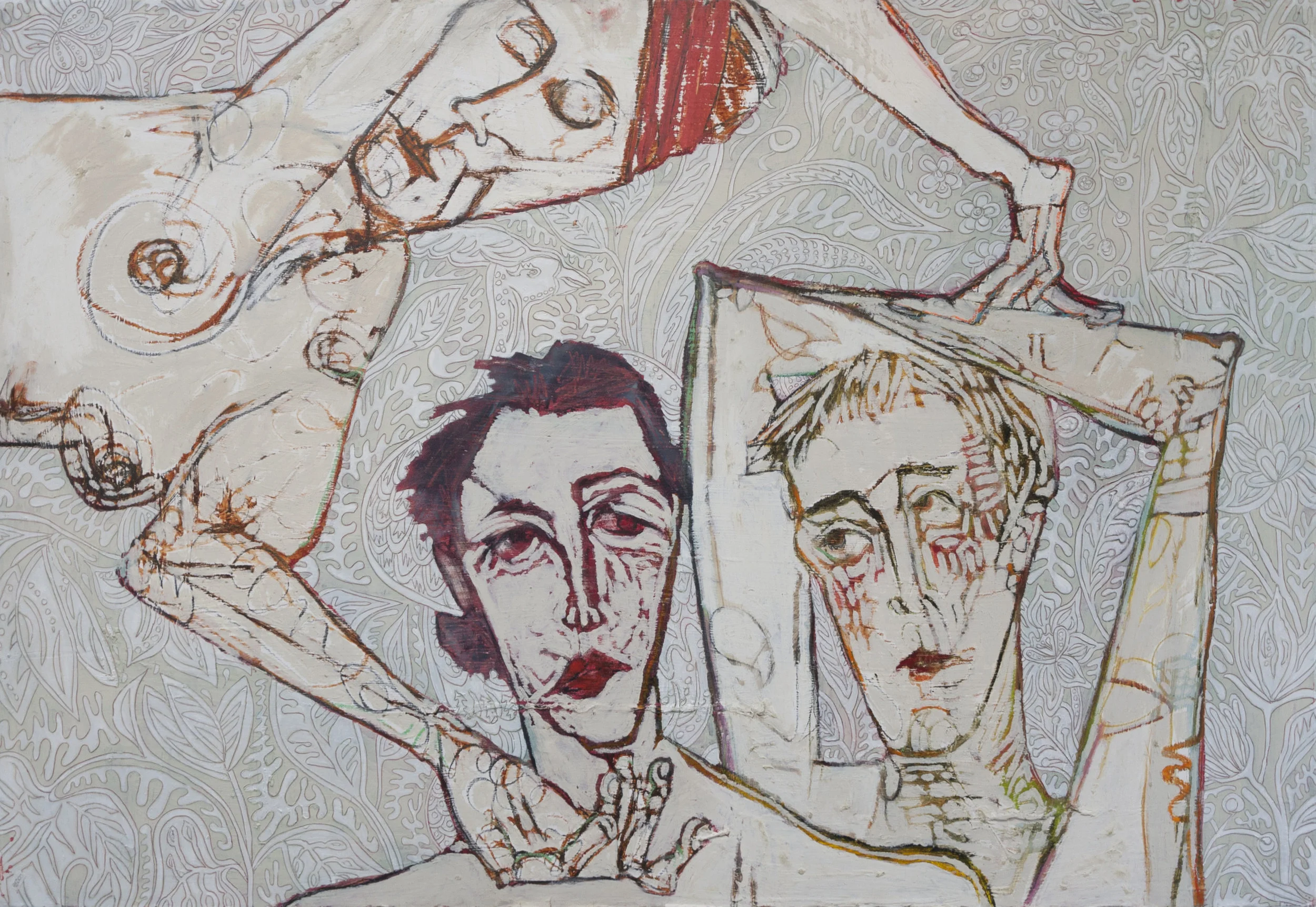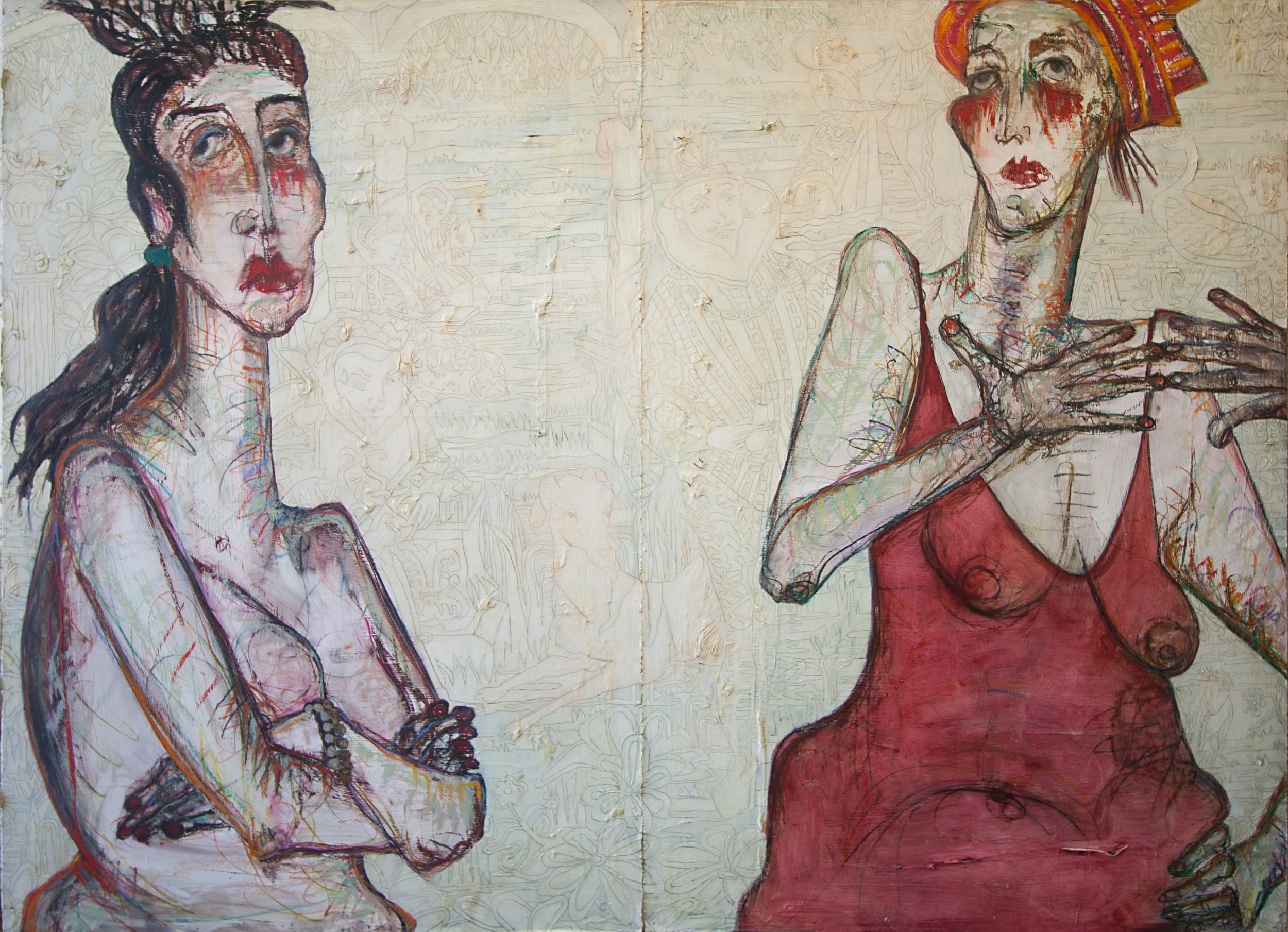 Working on a variety of surfaces, she creates her images with the application of oil bars, china markers, graphite and oil paint, using live models. With her complex backgrounds she accentuates the quiet inner beauty of her figure and draws life itself into her subject. Nancy Rosen steps into the spotlight with her solo exhibit, Frankly Mine.